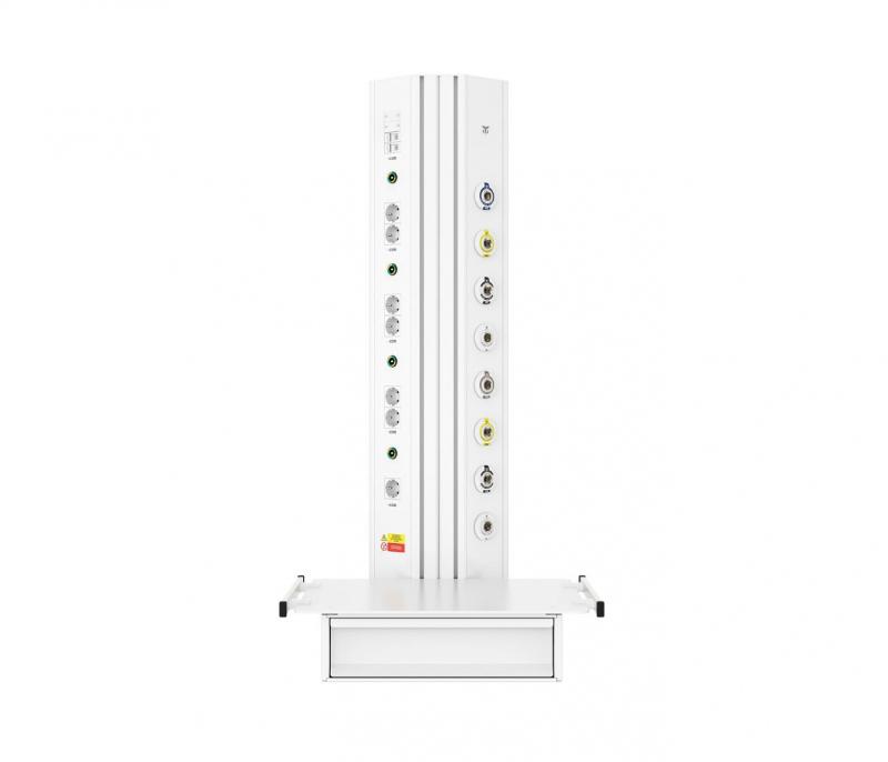 Вертикальная медицинская настенная консоль CADUCEUS CS07 для подвода медицинских газов, электропитания, а также организации освещения – идеальное решение для помещений медицинских учреждений, где невозможно установить горизонтальную консоль с необходимым функционалом.
